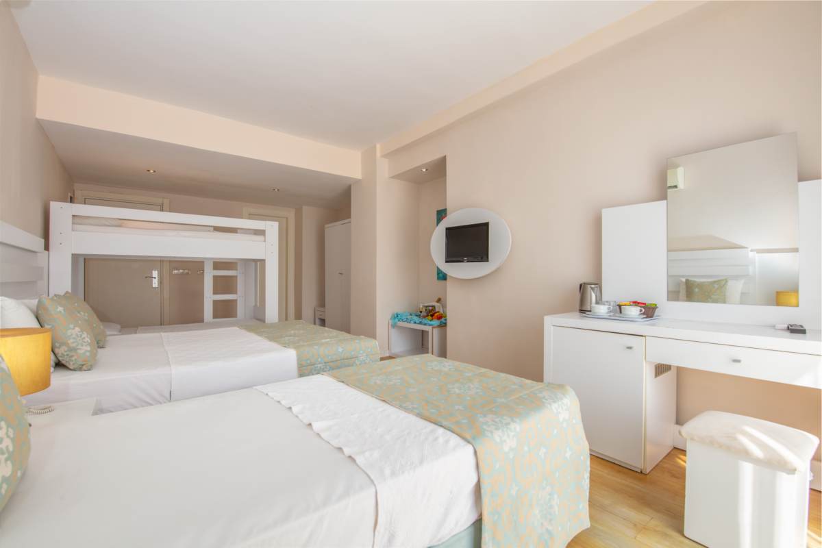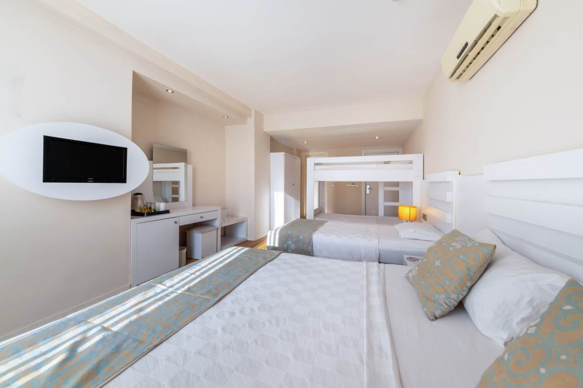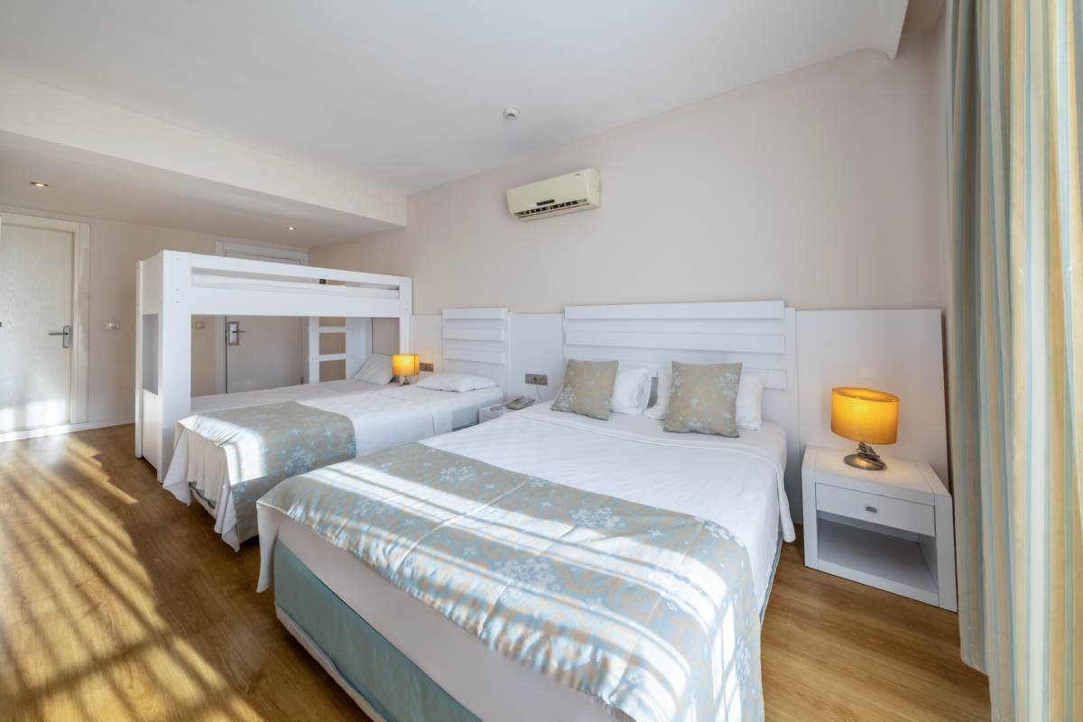 Standart Aile Odası; 8 adet 30 m² genişliğindedir. 1 büyük yatak, 1 küçük yatak, ranza ve banyo ile donatılmıştır. Balkon ya da teraslıdır.