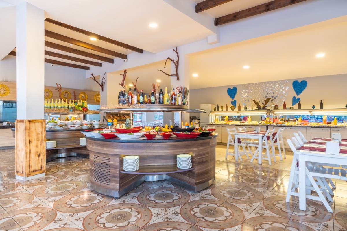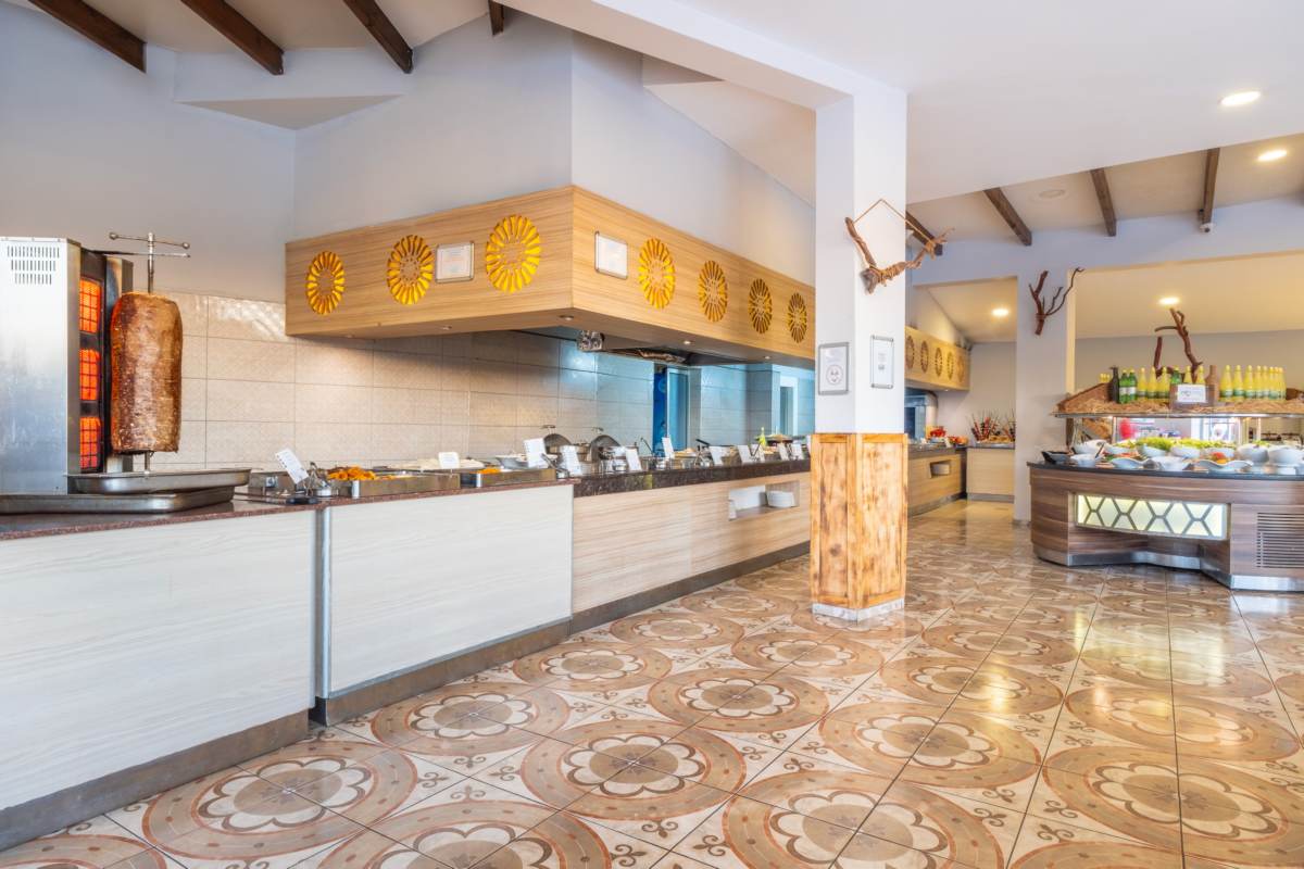 Açık büfe kahvaltı, öğle ve akşam yemekleri; tesisin belirlemiş olduğu markalar dahilindeki yerli alkollü ve alkolsüz içeceklerle 09:00 – 24:00 saatleri arasında ücretsizdir.